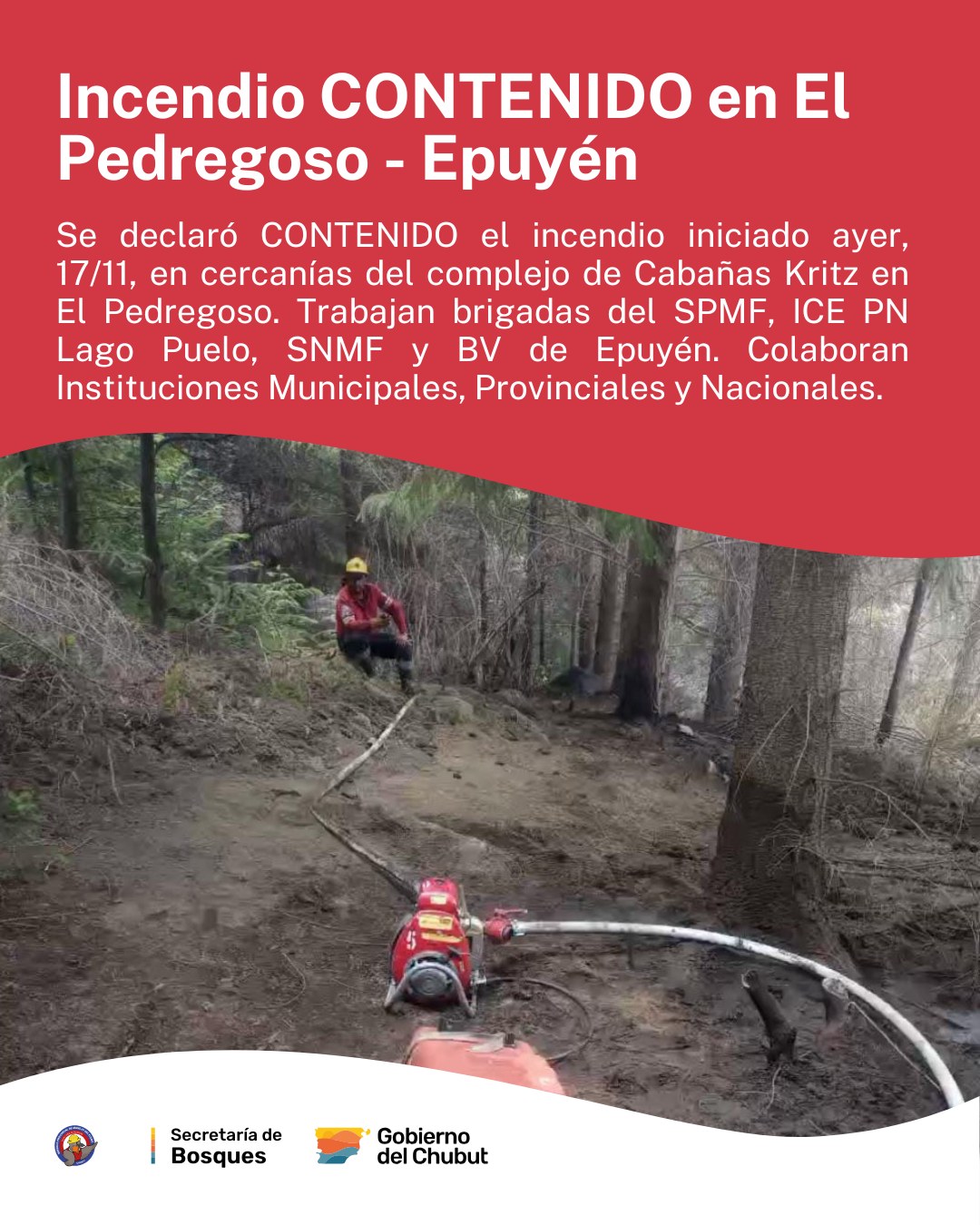 INCENDIO CONTENIDO en El Pedregoso – Epuyén![]()