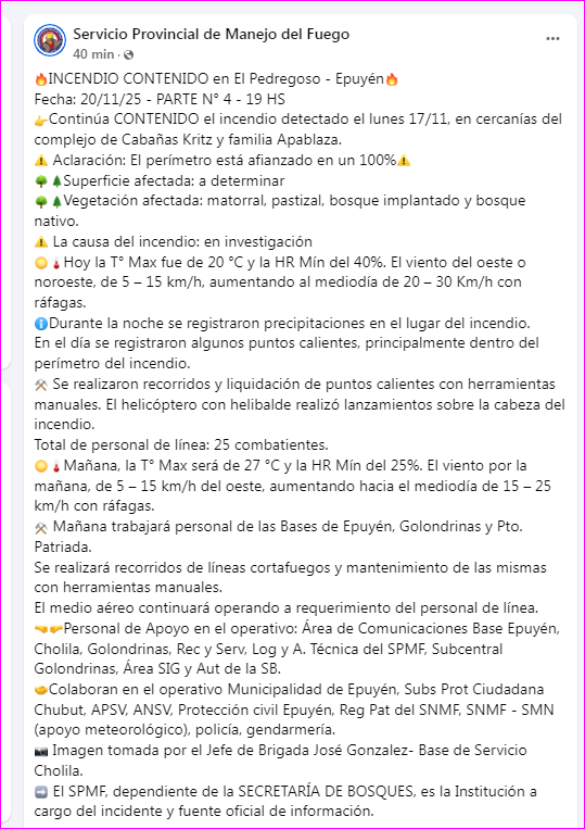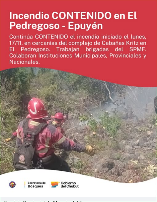 INCENDIO CONTENIDO en El Pedregoso – Epuyén![]()